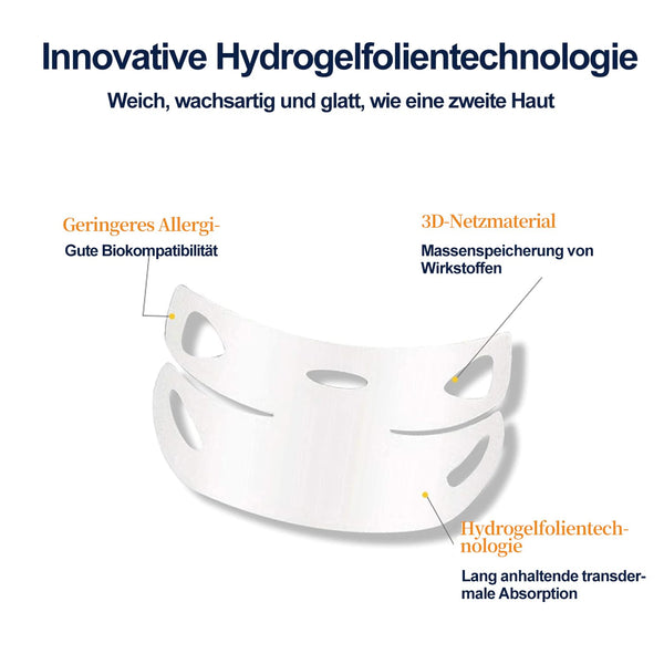 Straffung des Gesichtskinns: Passt sich perfekt den Gesichtskonturen an und strafft und strafft die Haut. Das dünne, hochelastische Folientuch ist mit einer Hydrogelschicht überzogen