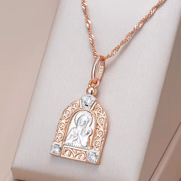 Kinel Luxury Virgin Mary Pendant Necklace For Women Men 585 Rose Gold Color Natural Zircon Jesus Charm Daily Fine Jewelry Gifts