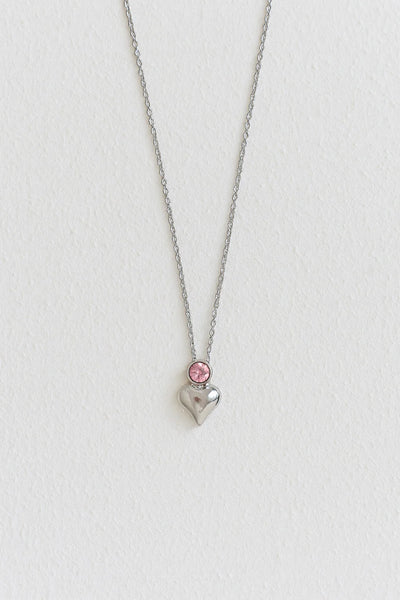 This stainless steel pink stone heart necklace offers a delicate and feminine touch to any style. The vibrant pink gemstone creates a soft romantic look while the durable steel structure ensures long lasting shine and resistance to tarnishing. Its lightweight design provides comfort for daily wear and its elegant heart shape makes it a thoughtful gift choice. Ideal for women who prefer stylish minimal and modern jewelry pieces.